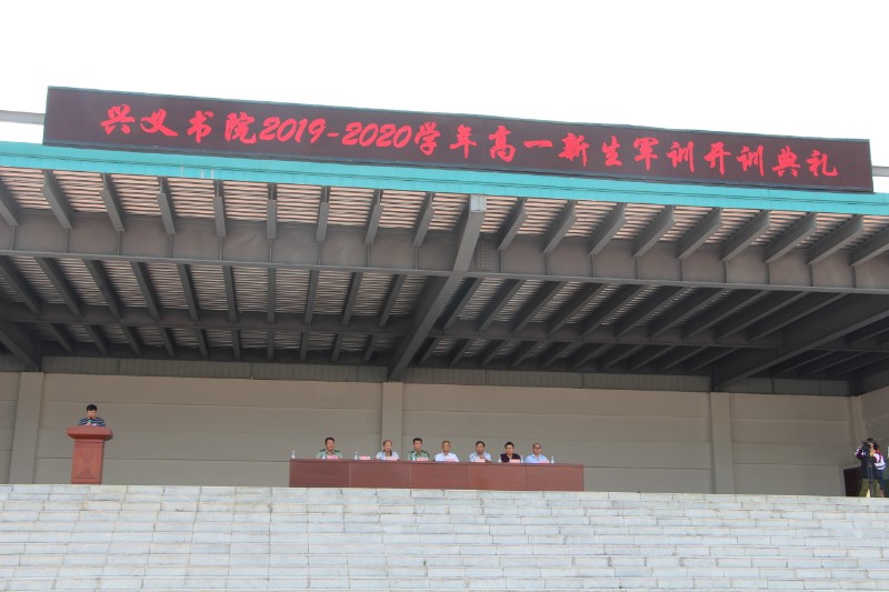 2019年8月12日,兴义书院2019级高一新生迎来了崭新的高中生活,开始了为期六天的新生军训。8月12日下午2点30分,高一各班新生在班主任的组织下,有序进入操场集合。下午3点整,兴义书院高一新生集合完毕,学校相关领导及兴义市人武部领导隆重出席,举行兴义书院2019级新生军训开训典礼,在张欣老师的主持下,王文佳校长做军训动员讲话,激励新生通过军训,提升修养和素养。同时,人武部领导以及军训总指挥官分别发表重要讲话,对军训的总过程做了安排和要求。开训典礼上,高一新生代表1912班赵湘铃同学以及班主任代表宋春梅老师上台发言鼓舞同学们的斗志。下午4点,军训帷幕缓缓拉开。