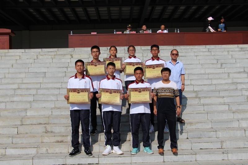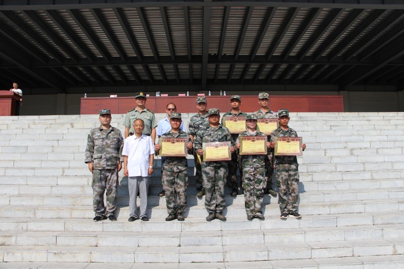 大会最后进行颁奖仪式,张天欢老师宣布本次军训中,内务训练获奖的寝室,会操优胜的班级,军训中优胜班级的教官,分别由学校领导和兴义市人武部保障科科长段太国同志为获奖的集体和个人颁奖。