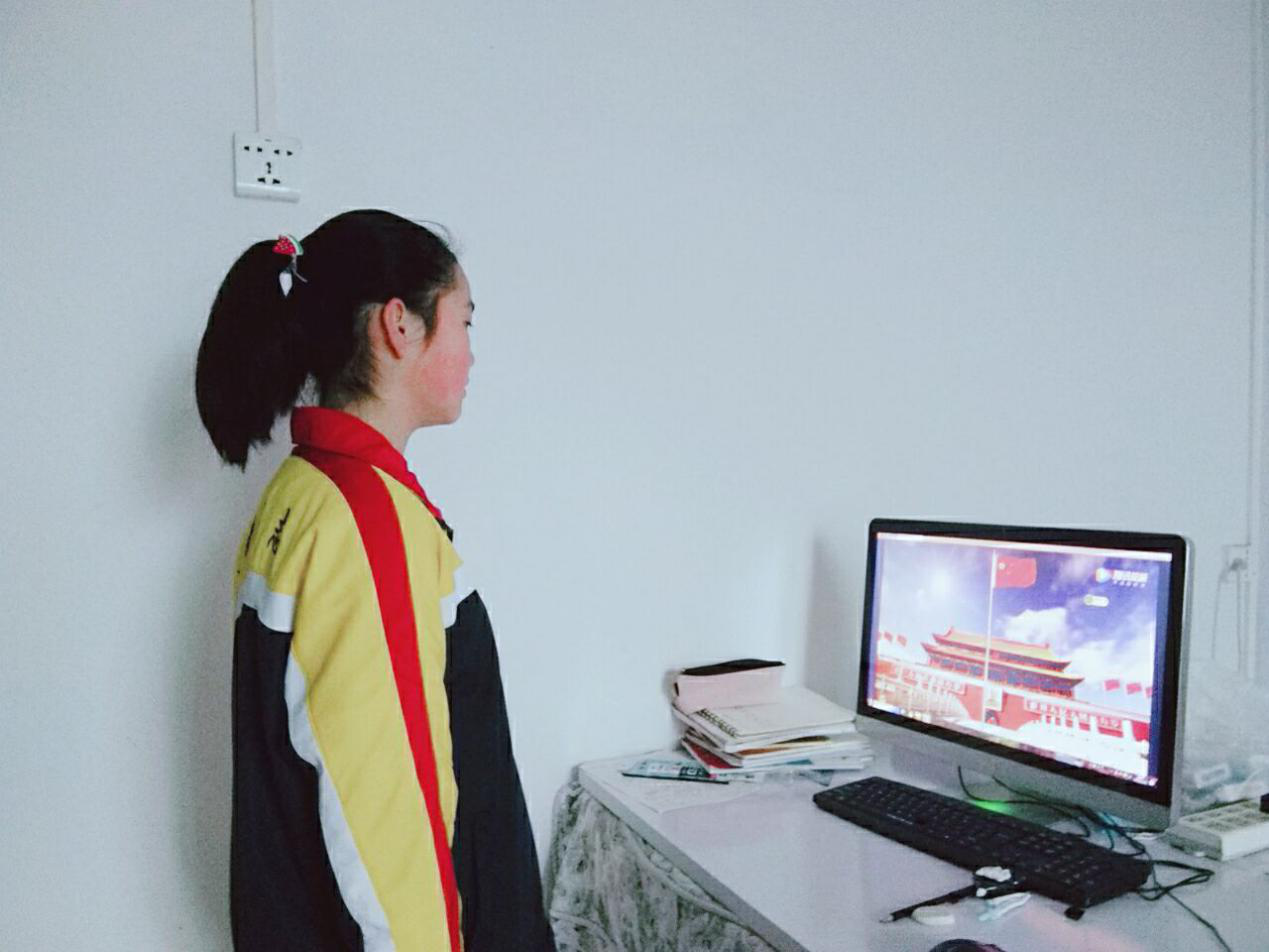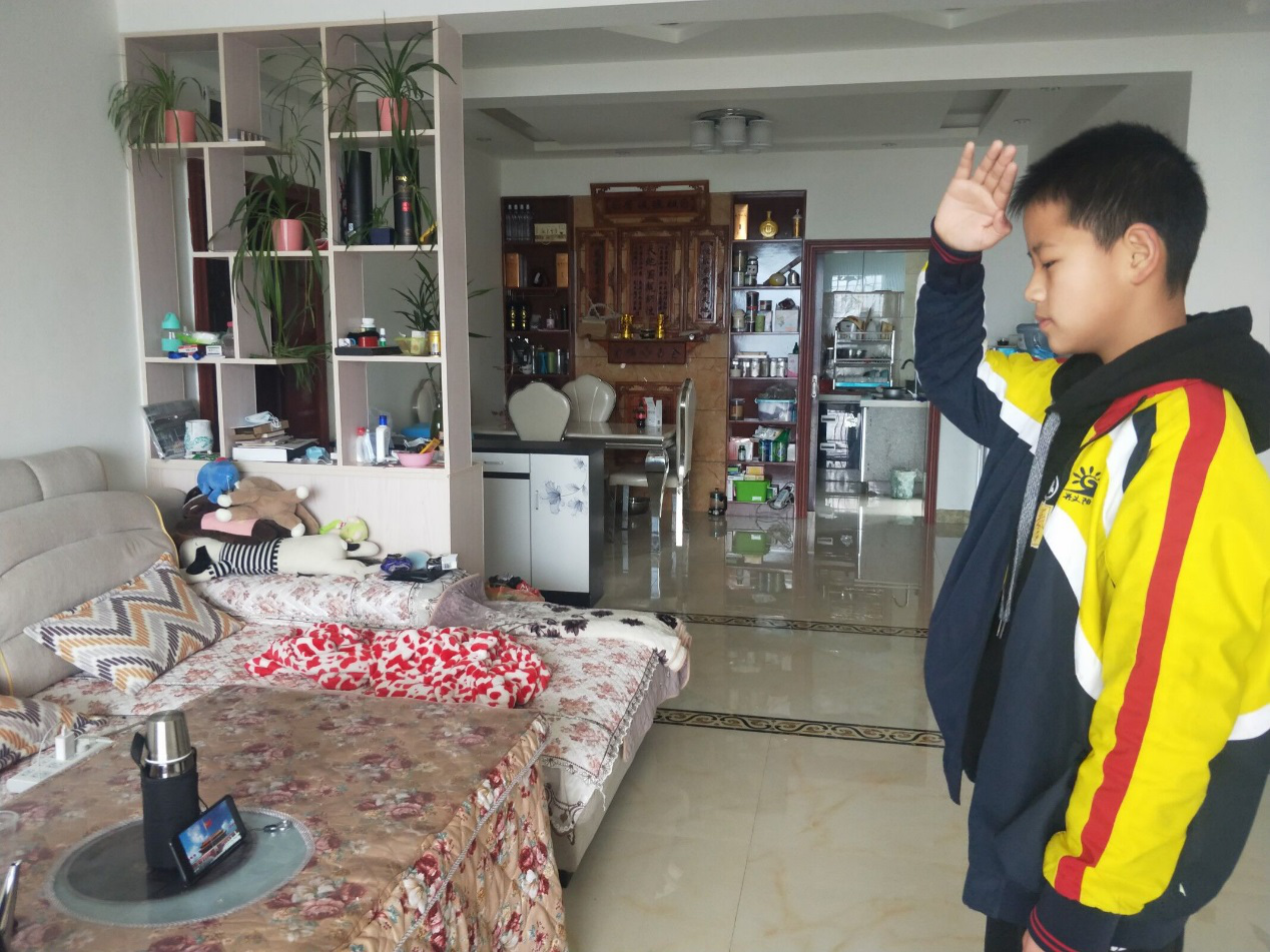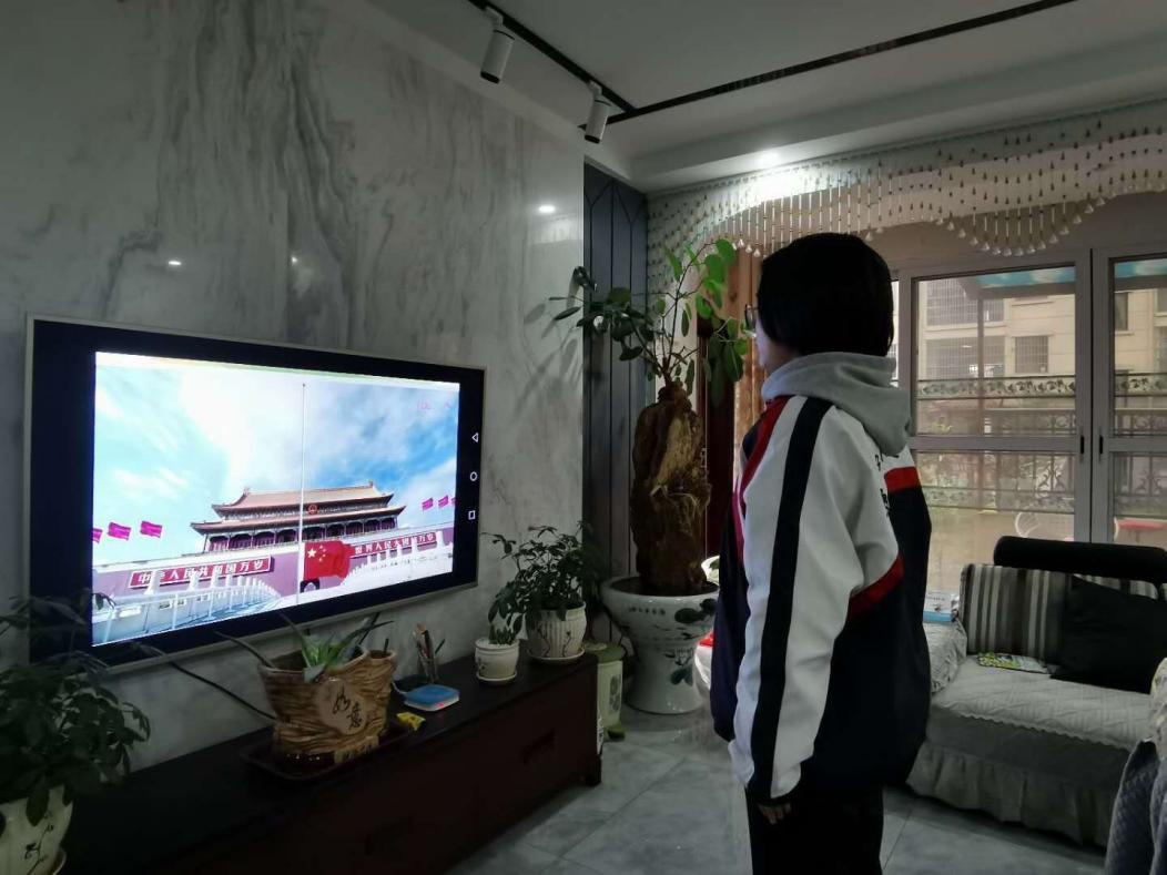 学生在家举行升旗仪式