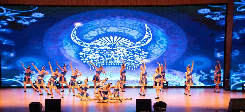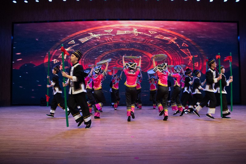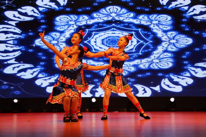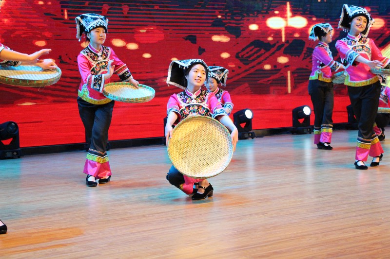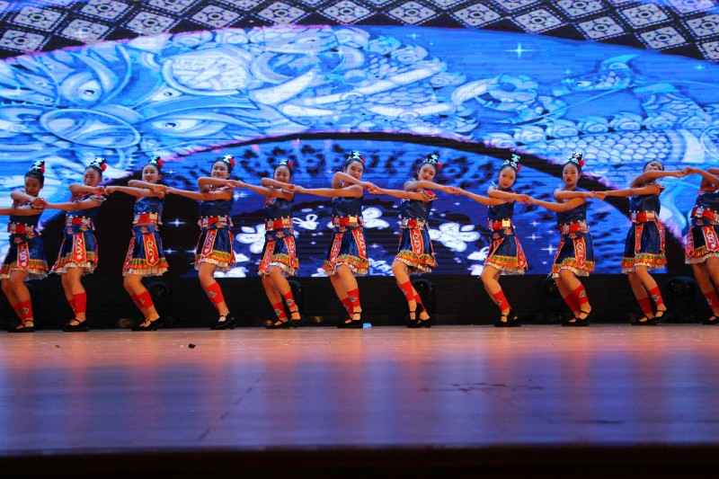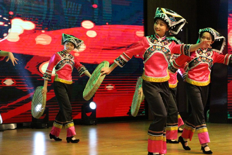 手拉手纵情演绎民族舞《苗朵姑娘》。