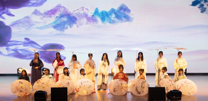 随后“花语”民乐团一首高雅而有韵味的《唯美中国》精彩演奏拉开了活动的序幕。舞台上,自信昂扬、热情满怀的小主持人用清晰流利的中英文主持节目;舞台下,观众们热情欢呼、掌声雷鸣。