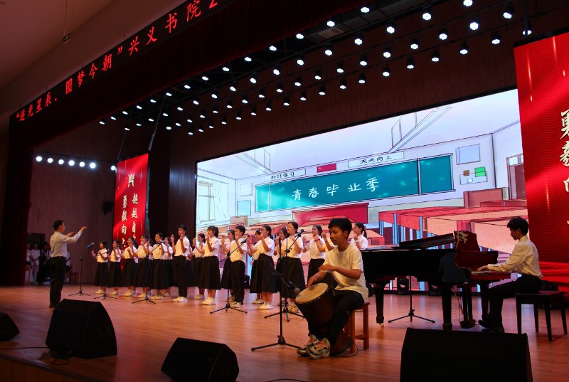 缤纷的七彩里,六月的性格是直率的,六月的情怀是火热的,六月的气魄是豪迈的,在这美好的六月,我们追逐梦想、奋勇前进,我们毕业在即、不忘感恩。6月1日,阳光书院高中部(兴义书院)2023届毕业典礼隆重举行,全体高三师生欢聚一堂,共度灿烂美好时光。州教育局党组成员、副局长李天维,兴义阳光资产经营管理集团有限公司党委书记、董事长陈明廷,贵州阳光尚贤教育投资有限公司总经理陈道静,阳光书院校长王文佳、党总支书记陈跃昌等出席活动,陈福盛副校长主持。