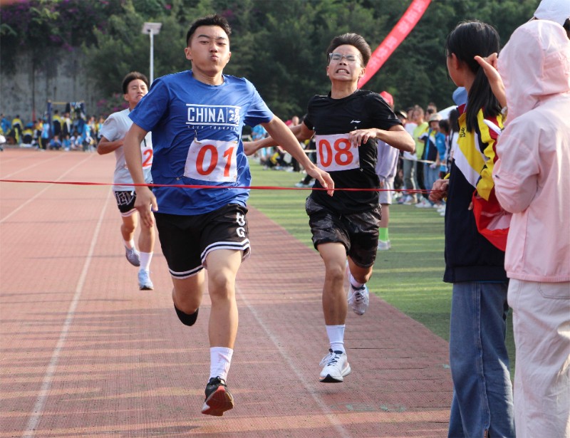 赛场上,学子们奋力拼搏、团结一致、超越自我,为了班级集体荣誉,干劲儿十足,拼了,豁出去了!赛场下,啦啦队的加油声、呐喊声交织在一起,还有送水、陪伴、搀扶的温馨后勤服务队,整个运动场成为了班级间团结协作竞技的赛场。