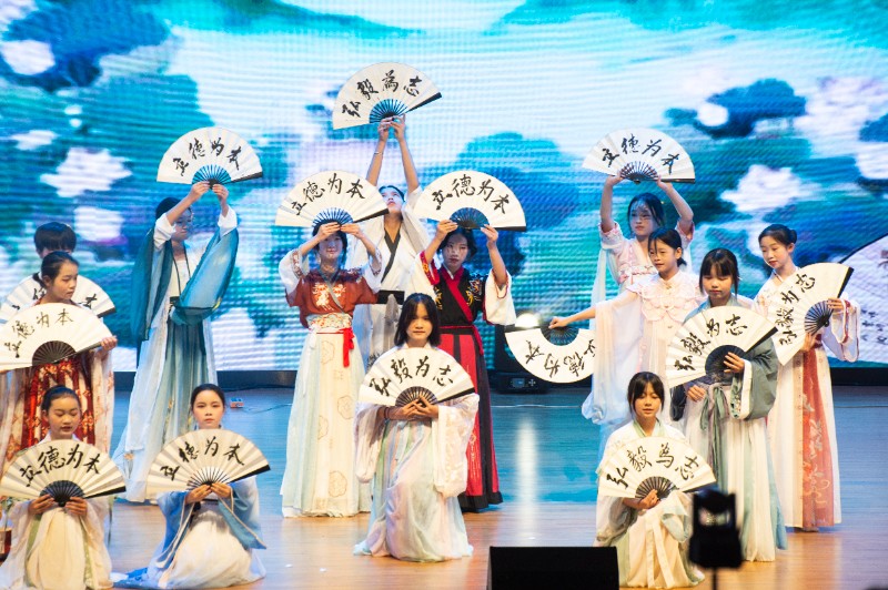 来自初高中学子的16个节目,围绕传承中华古典文化、书院“八义八德”文化、学校“三热爱”(爱祖国、爱家乡、爱母校)文化等内容,以器乐、声乐、舞蹈、相声、朗诵、配音等形式精彩上演。