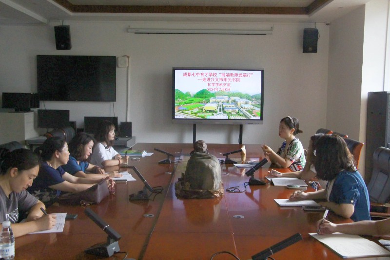 为加强校际交流,提升办学品质,7月8日上午,成都七中育才学校校长助理彭震率数学、物理、化学、历史、地理、体育六大学科骨干教师到我校考察交流,阳光书院校长王文佳、副校长陈恩旭等接待。