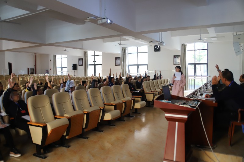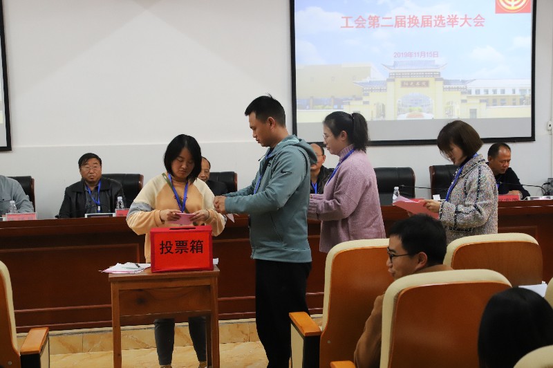 会议在庄严的国歌声中拉开了序幕。党支部书记、工会筹备领导小组组长陈跃昌作筹备工作报告,左狄老师宣读了代表资格审查报告与选举办法,并将选举办法提请大会表决,选举工作紧锣密鼓地进行。